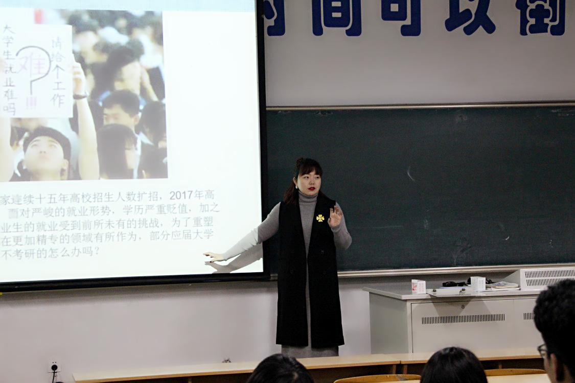 在本次动员会上,江老师用生动的语言向所有毕业班同学详细讲解就业形势及对往届就业成功的案例进行解析,江老师在就业工作方面经验丰富,早在2016年初即多次动员大四员工要早关注、多留意就业信息与岗位,并借助网络大数据分析,引导本届毕业生尽快找到自己的就业渠道。