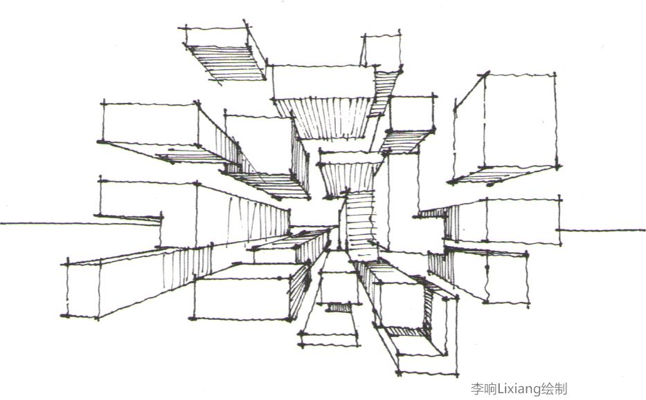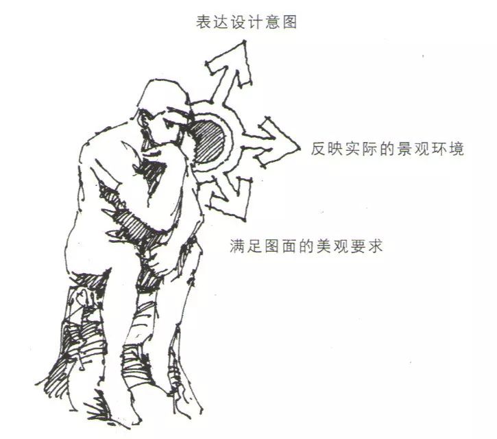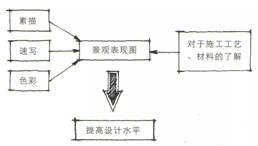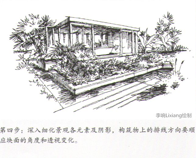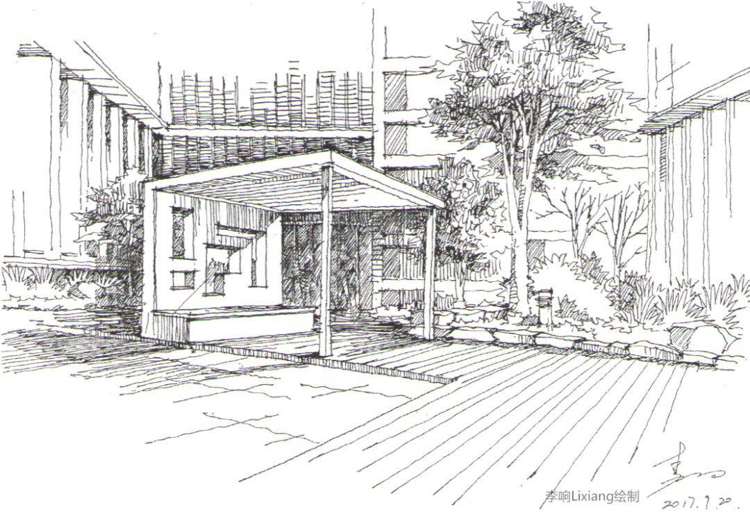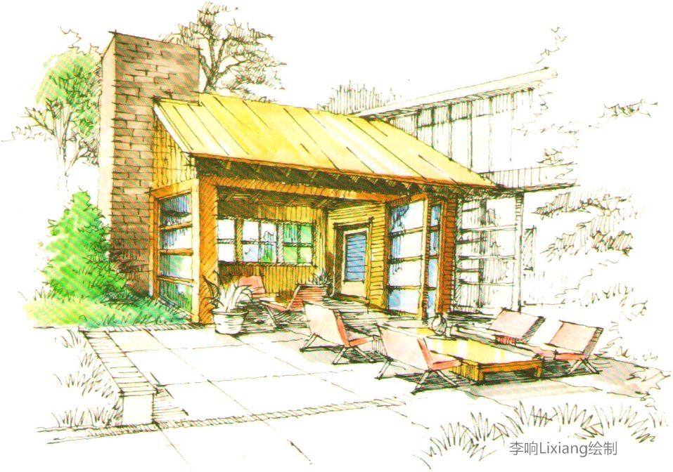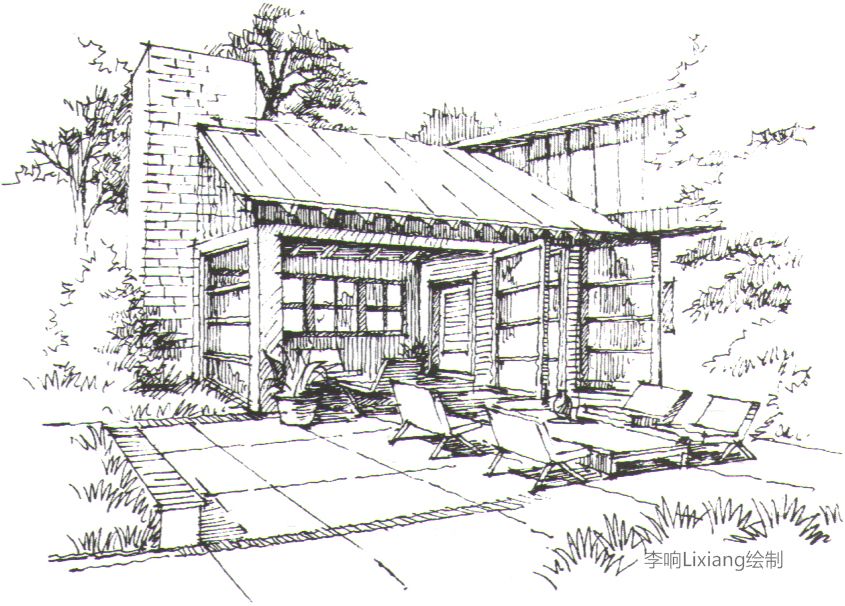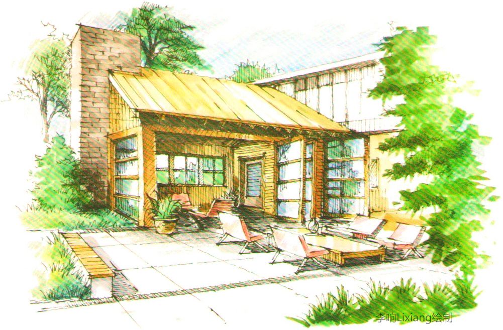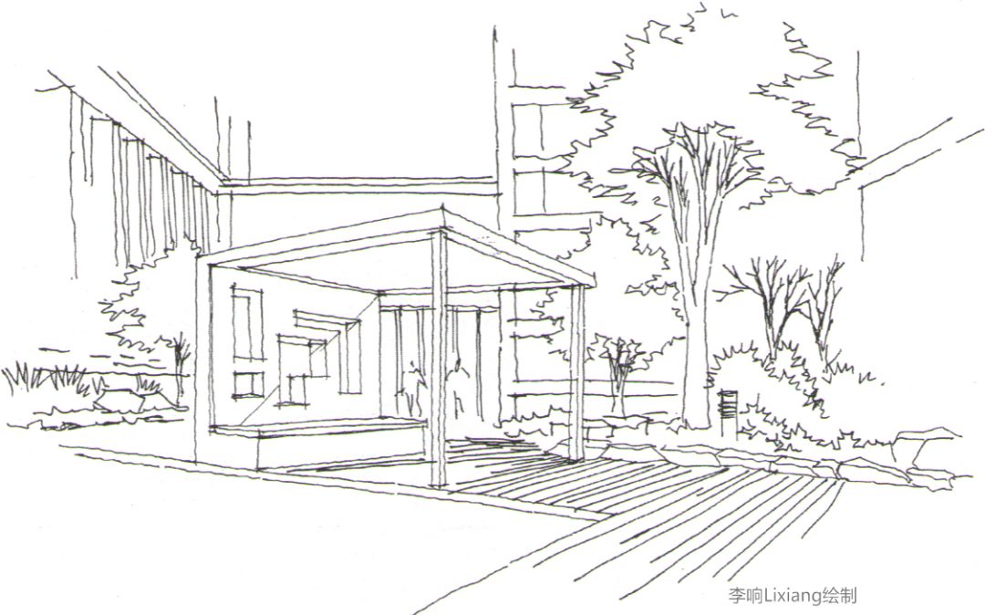 我们主张读者对于手绘表现的学习应是一个从整体到局部再到整体的过程,即对景观手绘表现图的作用与内容有一个整体的认知;在此基础上深入各个部分的学习与训练,如线条的绘制训练,各景观局部的绘制训练等;然后回到画面整体的构图与主次布局的掌握,以此达到把握画面绘制的整体感的目的。本教材在遵循这一规律的基础上编排各部分的内容,以合理逻辑帮助读者建构手绘表现图的认知与练习。