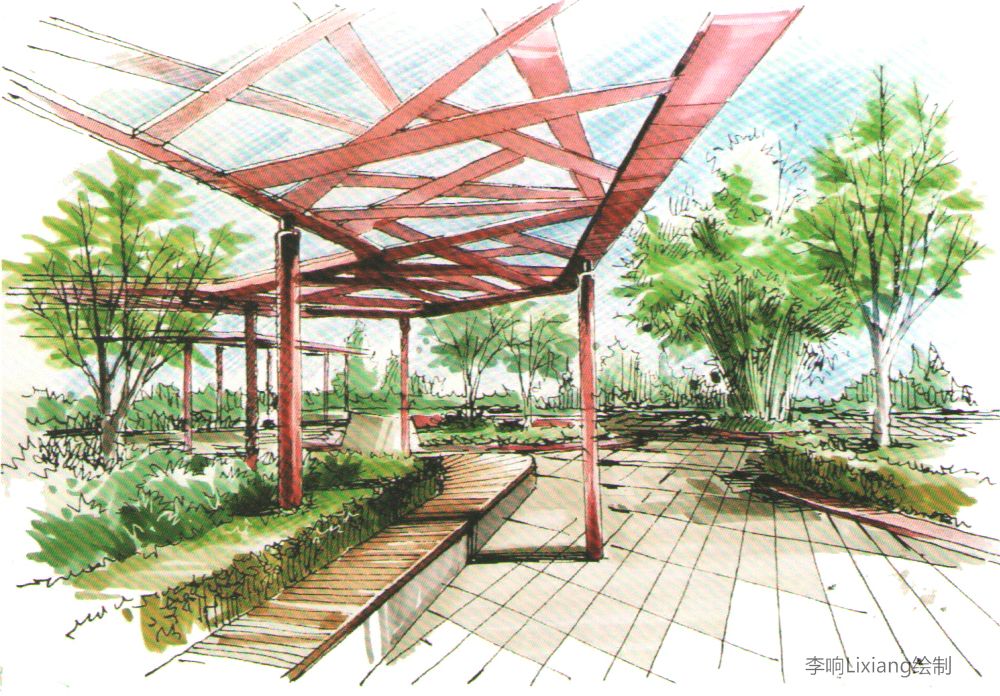 鉴于近些年,景观设计手绘表现类书籍的品类较多,其内容多是围绕马克笔表现技法而展开,这类书籍对于在校员工短期内提高景观手绘表现具有一定的参考意义,但是并不能从根本上解决手绘表现“为何而表现”的问题,这是景观手绘表现的基本问题,也是最重要的问题。一幅优秀的景观手绘表现图,其中的技法是必须的,而具备扎实的综合理论知识并能够结合图面进行灵活运用才是绘者能把控整体图面效果的重要基础。因此,我与王桉、李响等一起编撰了《景观设计手绘表现》教材。