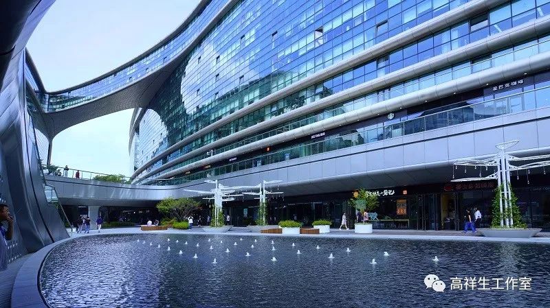 上海凌空SOHO商场是扎哈·哈迪德的遗作。商场广场中流动的水面、灿烂的阳光、湛蓝的玻璃与建筑形体中流动曲线遥相呼应。展现了扎哈·哈迪德一贯以曲线和曲面取胜的特点。