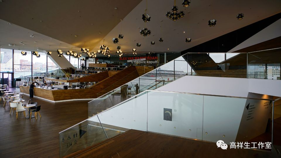再来看阿姆斯特丹电影公司,室内光和自然光的组合使空间的色彩更为雅致、精彩,举目所及,大块简约的体块互相穿插构成了多姿多彩的空间形态。除此之外,阿姆斯特丹的现代美术馆、建筑协会的室内设计同样别具一格。