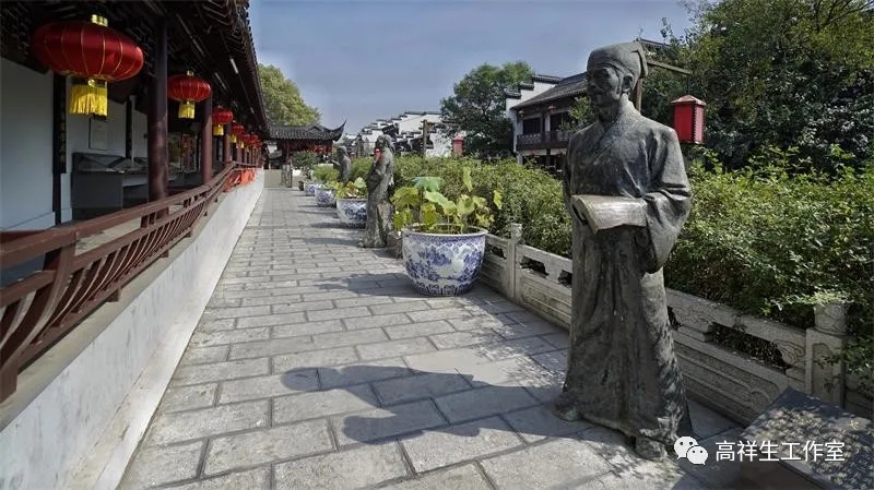 图17 江南贡院南苑面湖的廊道上功成名就的学子雕像 高祥生摄影