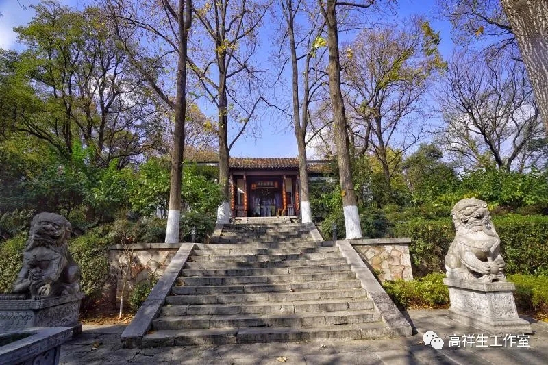 清凉山公园南大门后的右侧有一条向上的石阶小道,时隐时现,逶迤曲折,两旁八角金盘、梧桐、无患子佇立,湖石悉数、凉亭点缀,阳光下石阶光斑陆离。
