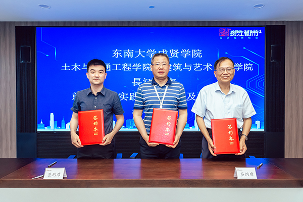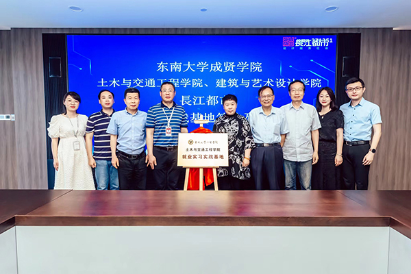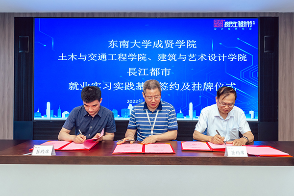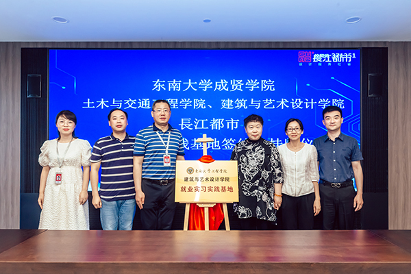 人力资源部经理刘友存则向与会领导、老师介绍了从2013年起入职长江都市的19位成贤员工的职业发展情况,他们在结构设计、建筑设计、室内设计、环境设计等多个岗位,展现了成贤学子扎实的专业功底和良好的综合素质,为企业的快速发展贡献了自己的青春智慧。科研技术管理部经理韦佳以《坚持“双创”战略驱动持续发展——长江都市设计创优与科技创新》为主题,介绍了长江都市从传统的设计企业向工程设计与科技创新相集合的科技企业的转型之路,介绍了企业近年来在绿色建筑与装配式建筑、办公建筑的创新应用、科研课题与技术研究等方面所取得的成果。随后土木与交通工程公司经理郭正兴、建筑与艺术设计公司党总支副书记邵叶鑫,分别代表两个公司与南京长江都市建筑设计股份有限公司总经理董文俊签订了《就业实习实践基地协议书》并挂牌“BB贝博艾弗森就业实习实践基地”。