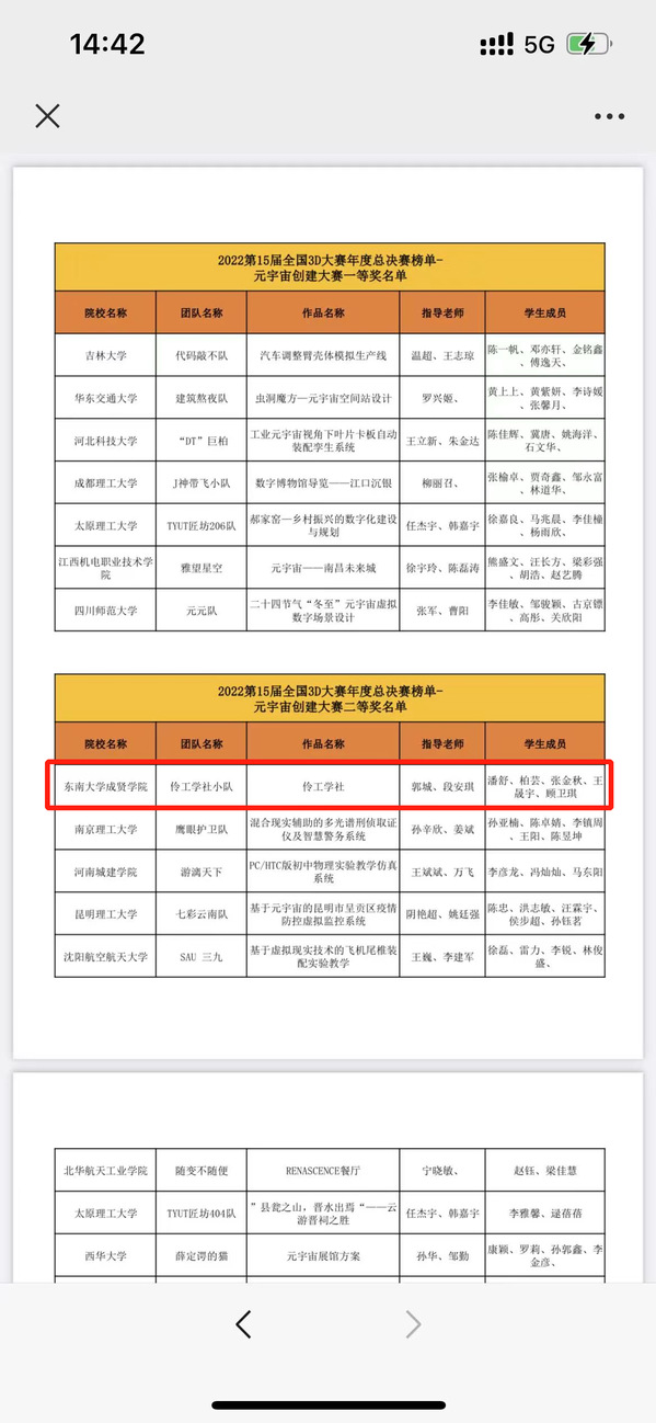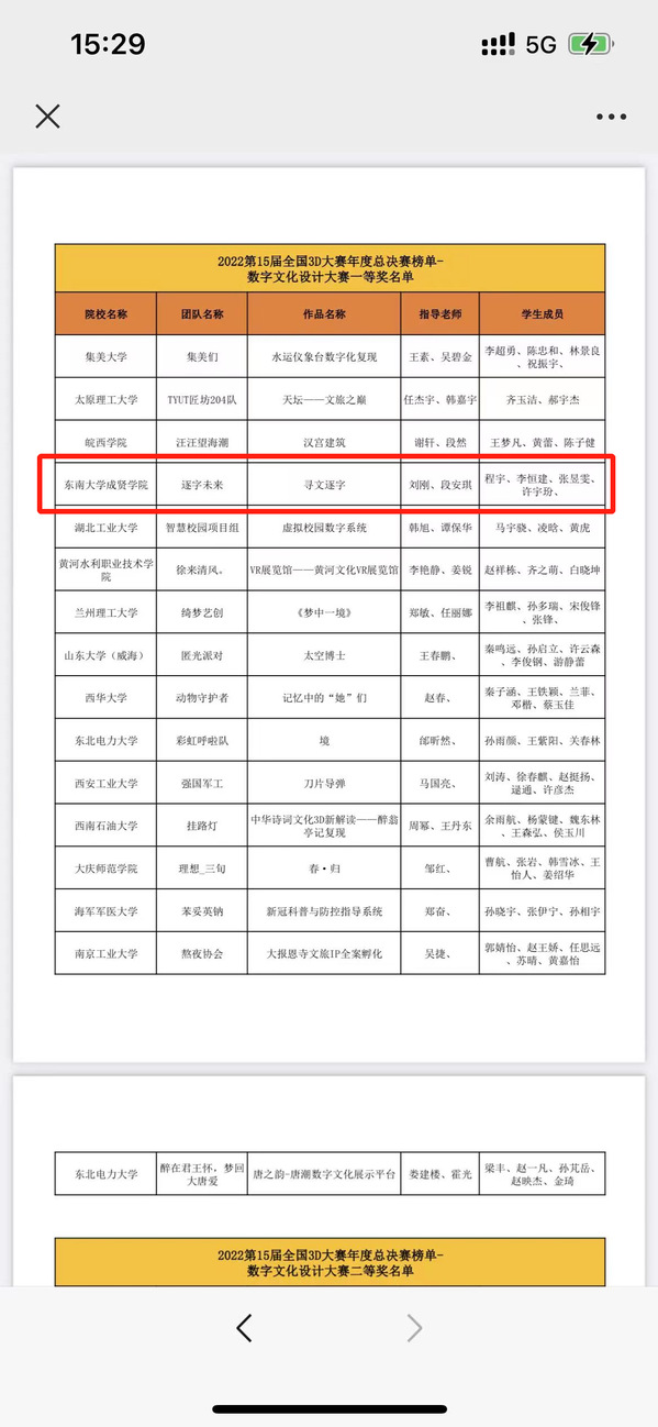 获奖名单截图