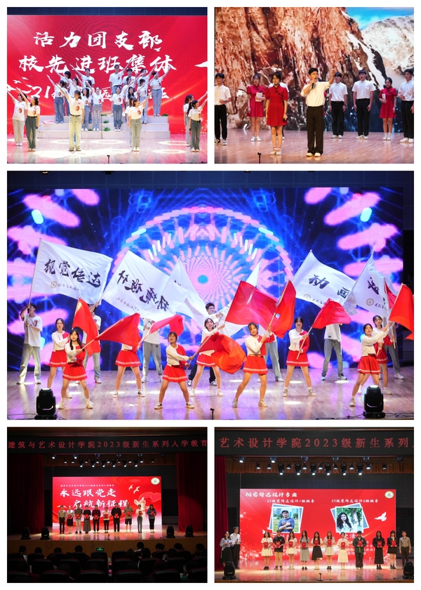 开场舞蹈《旗开得胜》表达了建艺学子将用豪迈的姿态迎接美好的老员工活。随后的《戎装上阵,启航新程》视频回顾了新生报到与军训,将大家拉回入学后的点滴。意犹未尽中又进入“梦的心声”公司寄语环节,全体新生开启事先放在座位上的信封,阅读来自公司老师和2023届毕业生的手写祝福卡片。21级风景园林1班进行了班级风采展示,他们将活力团支部的凝聚力和集体荣誉感埋进每一位新生的心中。21级员工干部代表表演了诗朗诵《少年中国说》,铿锵有力、慷慨激昂的语句萦绕在每一位新生的耳边。