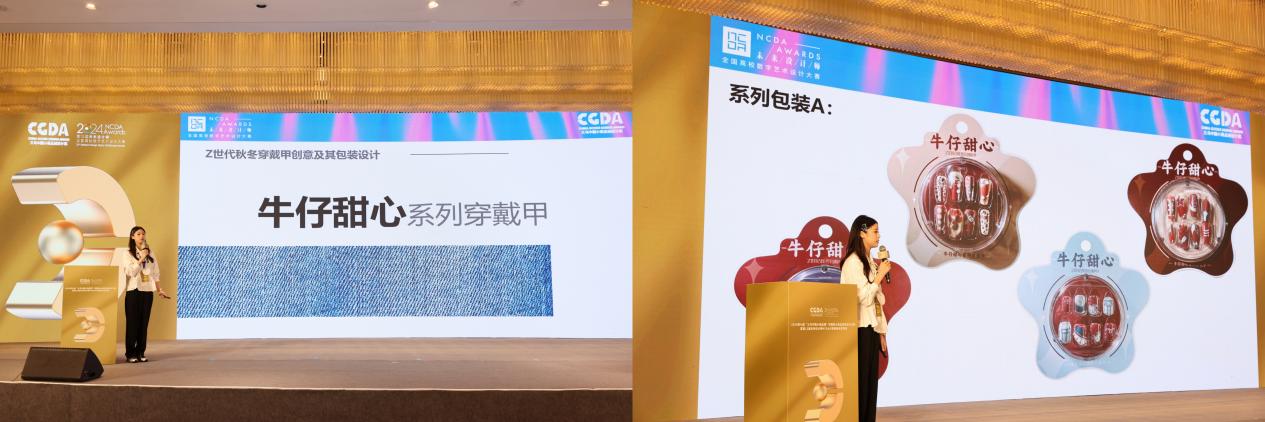 近日,2024第12届未来设计师•全国高校数字艺术设计大赛(NCDA)大赛落下帷幕。公司BB贝博艾弗森员工作品在本次大赛中获得多项国家级、省级奖项,再创该项赛事获奖数量和质量历史新高。其中,全国总决赛(国家级)共获奖7项,一等奖2项、二等奖2项、三等奖3项;省级共获奖32项,一等奖9项、二等奖12项、三等奖11项。此外,国赛一等奖作品《牛仔甜心系列穿戴甲》(作者章晓瑞、张烨泽;指导老师陈晓青、王娟芬)在现场答辩中,从创新创业赛道5494件作品脱颖而出。该赛道作为国内创意设计落地样板赛事,参赛者需经历省级初选、赛区初轮答辩、设计对接工厂打样、全国路演答辩多个阶段,从设计全流程考察员工的设计综合能力。