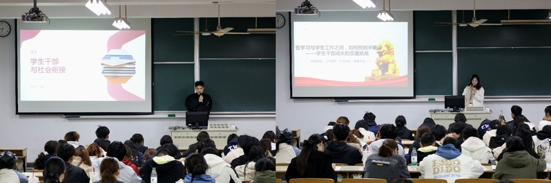 公司2019级员工冯浩学长、2020级员工张若彤学姐结合自身经历,分别以“员工干部与社会衔接”和“在学习与员工工作之间,如何找到平衡点——员工干部成长的双重挑战”为主题,进行了别开生面的分享交流他们鼓励员工干部在服务同学的过程中,不断探索新方法、新途径,在生活中践行青马精神,提升工作效率和质量,创造性地解决问题员工们的话有力地推动了学员们对青春价值的探索与行动,激励自身在不懈追求中谱写属于自己的青春华章。