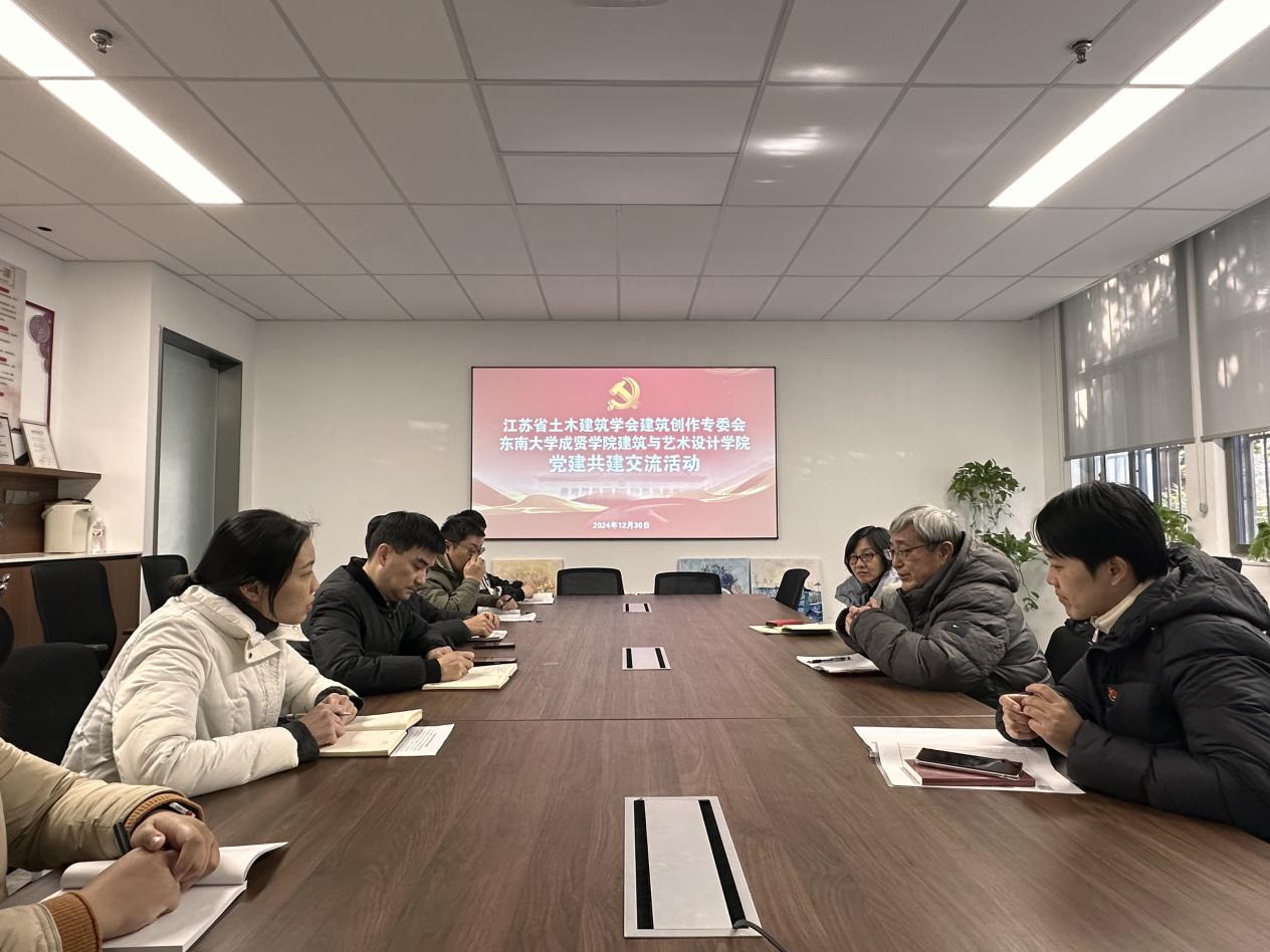 交流会上,邵叶鑫副书记对江苏省土木建筑学会建筑创作专业委员会党建工作小组到公司开展党建共建表示热烈欢迎,感谢专委会党建共建交流活动助力公司专业创新发展,同时介绍了公司党总支基本情况、校地校企党建工作特色、党建引领与专业建设和人才培养成效等。胡振宇教授详细介绍了江苏省土木建筑学会建筑创作专业委员会的发展历程、组织结构、职能活动、成就影响等,重点阐述了党建工作在专业委员会发展中的关键作用。他指出专委会将给予公司进一步支持,同时鼓励公司师生积极参加专委会举办的各项学术活动,不断推动专业建设迈向新高度。