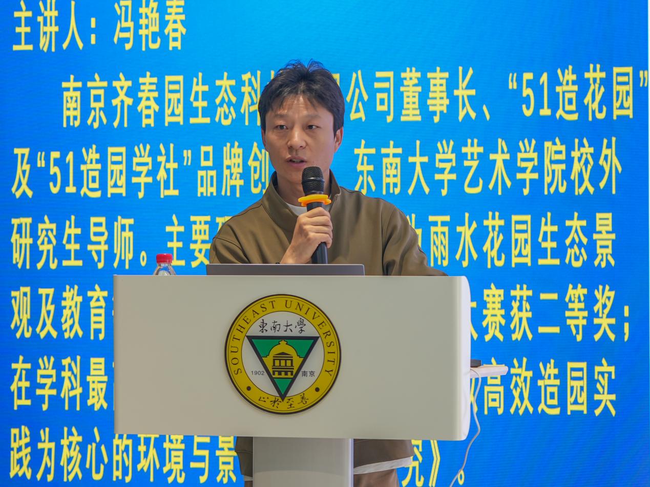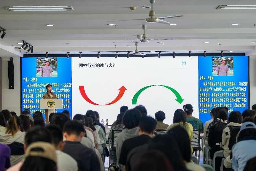 冯艳春老师是“51造花园”及“51造园学社”品牌创始人、东南大学艺术公司校外研究生导师。在讲座中,他结合自身创业经历和教学实践,从破局、重构、进化、突围、行动等五个方面阐述了空间艺术设计当前面临的挑战与机遇,解析了AI技术如何助力超级个体实现更加高效、个性、智能的设计与多重职业赋能。以“破局”开篇,冯老师指出人才需求的变化与AI技术的冲击正倒逼行业转型,兼具创意、技术与跨界能力的“超级个体”成为稀缺资源。借助AI工具成为个人能力的“外挂”“超级个体”可将设计、技术、材料等多学科知识融会贯通,快速生成方案。谈及“重构”,冯老师对比了匠人经验与AI量化分析的差异,AI技术正在推动行业从“造园”转向生态修复与文旅IP打造,并以某城市利用AI规划绿地为例,展现了数据驱动设计的潜力。在“进化”环节,冯老师展示了如何用AI进行实战场景拆解,将设计师拥有的独特审美哲学与AI的数据分析能力相结合,可事半功倍。最后,冯老师呼吁以“AI执行,人类决策”模式突围,AI处理数据生成方案,设计师聚焦于创意与人文关怀,鼓励师生切入智慧城市、元宇宙虚拟景观等新兴赛道,并以“千磨万击还坚劲”激励青年拥抱变革。之后,冯艳春老师带领同学们来到室外,演示了先进的造园工具,同学们对这样的新科技产生了浓厚的兴趣并积极参与互动。