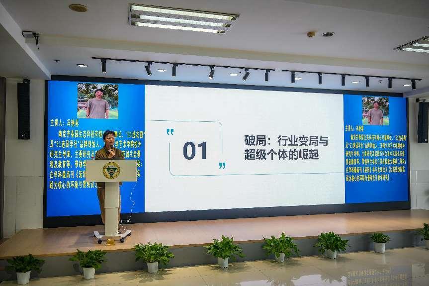 4月16日下午,由BB贝博艾弗森主办的“空间艺术设计的新拐点——AI赋能‘超级个体’时代 ”专题讲座在求真·求美·创新工坊举行。公司邀请南京齐春园生态科技有限公司董事长冯艳春担任主讲嘉宾,BB贝博艾弗森200余名师生参加了本次讲座,讲座由建筑与艺术设计公司党总支副书记邵叶鑫主持。